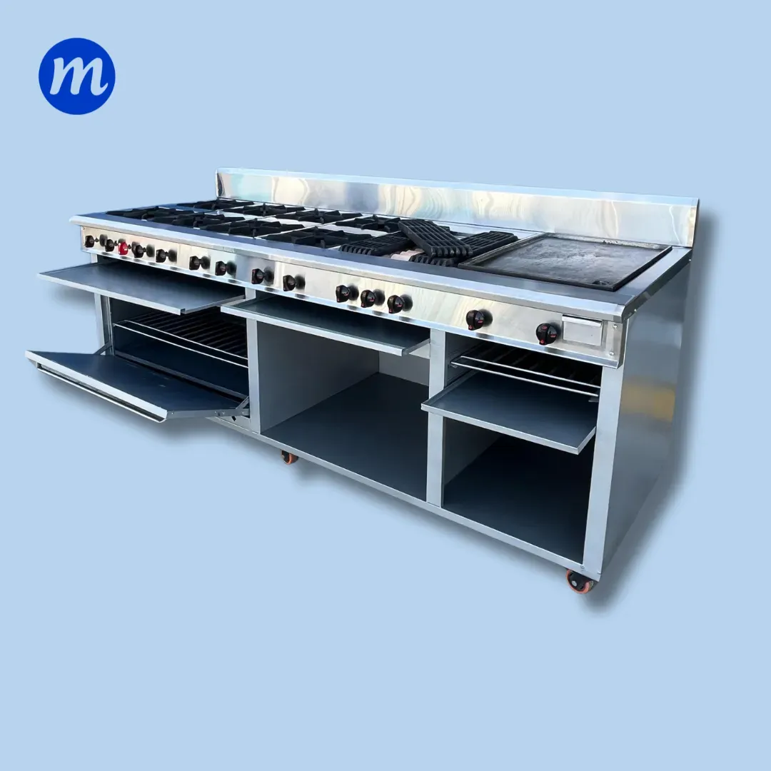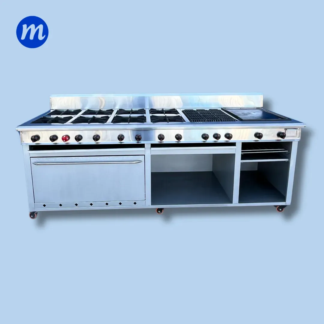 COCINA 8 HORNILLAS EN HIERRO QUEMADOR Q30, GRILL, PLANCHA, HORNO Y GRATINADOR