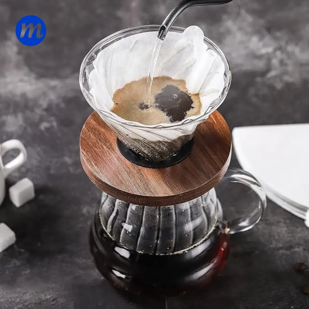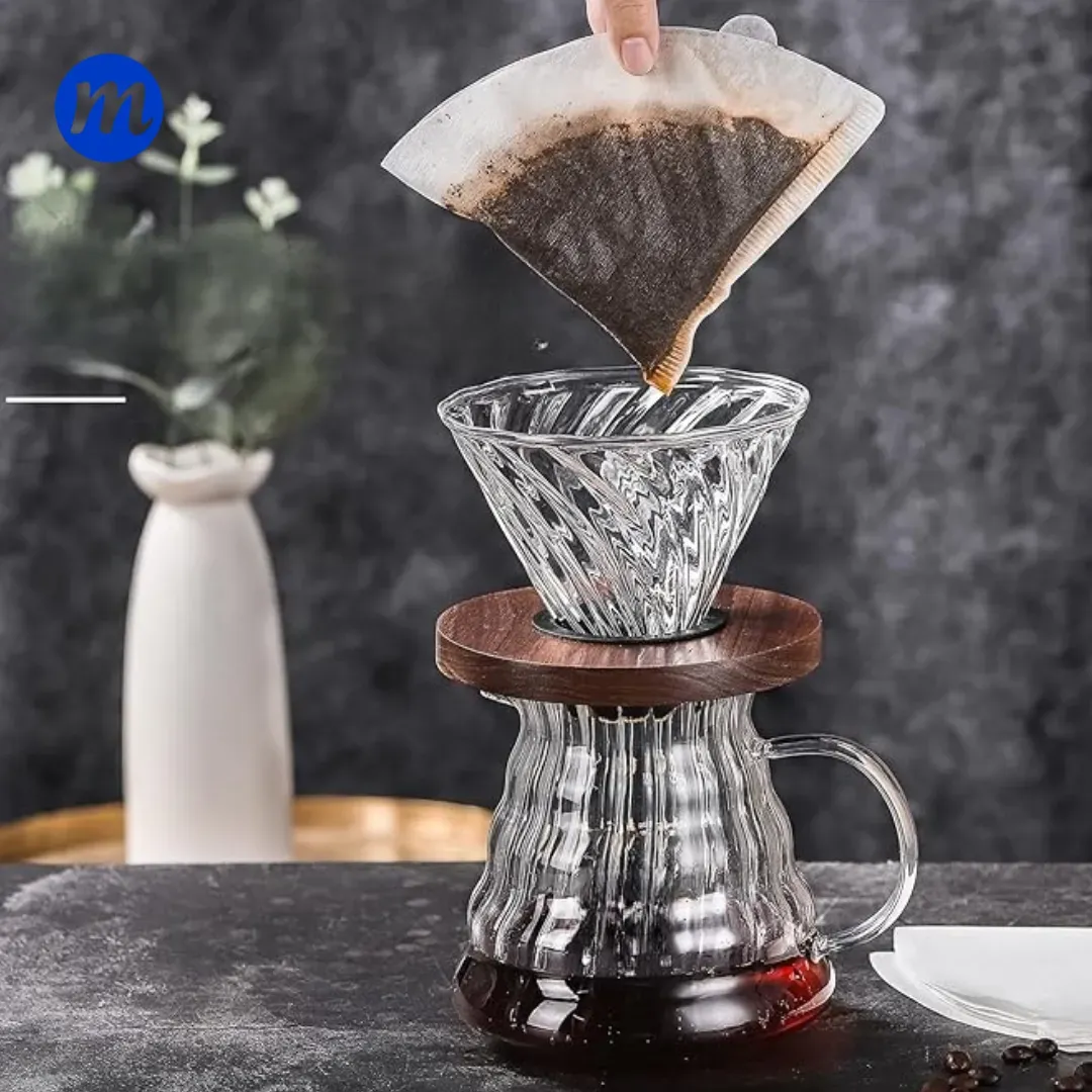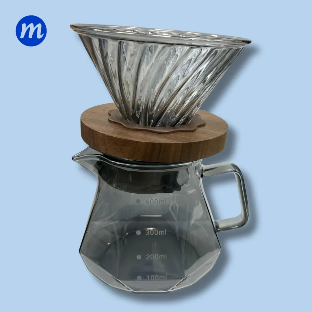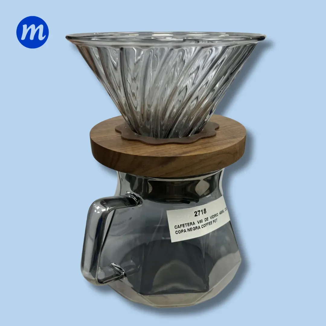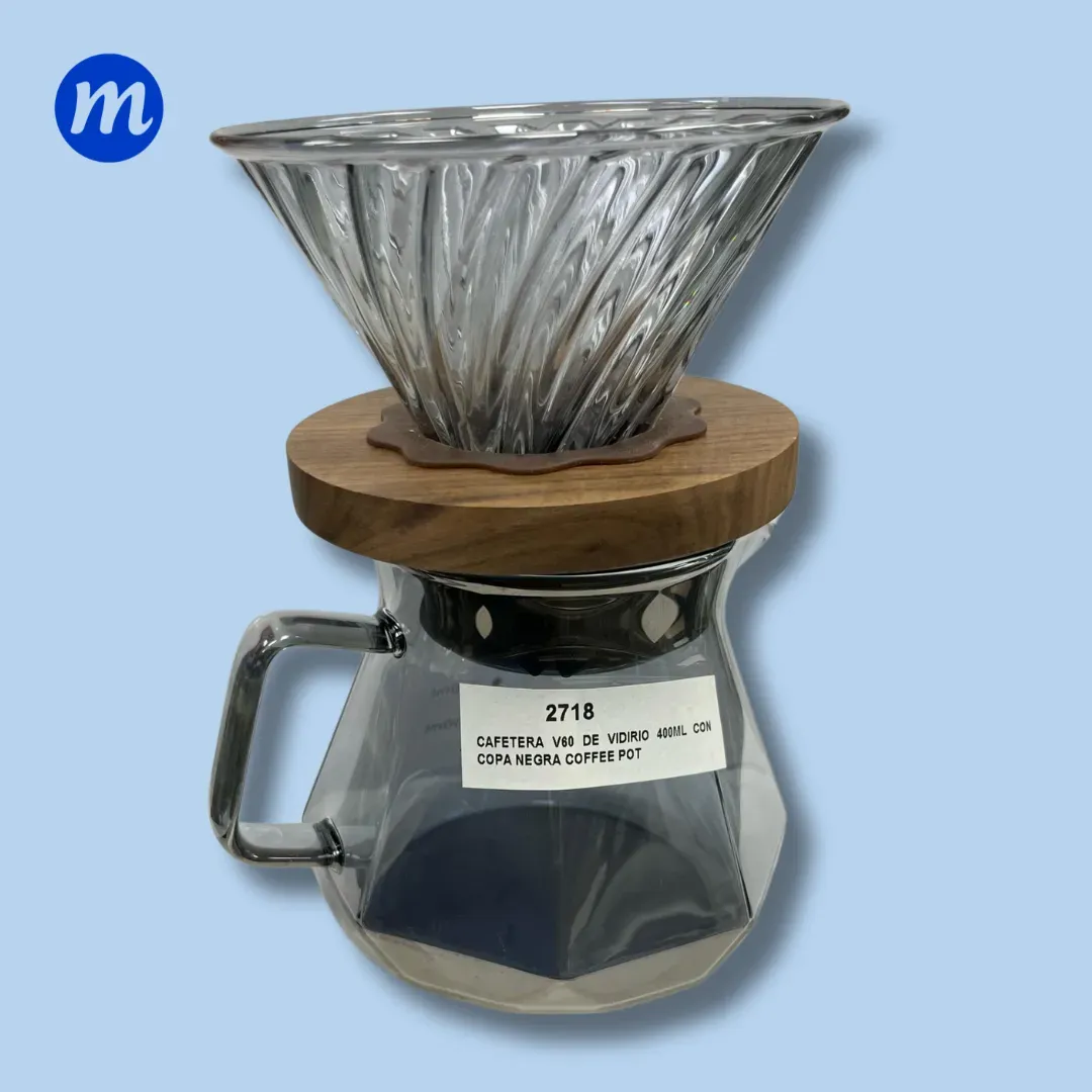 CAFETERA V60 DE VIDIRIO 400ML CON COPA NEGRA COFFEE POT