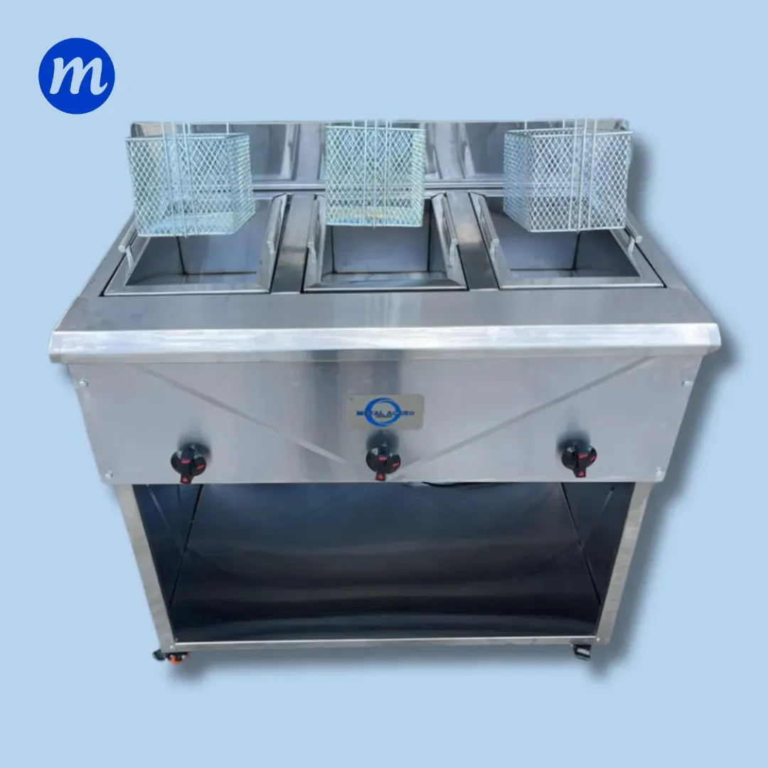 FREIDORA DE PEDESTAL 3 CESTAS 8 LITROS C/U GAS A/I METAL ACERO
